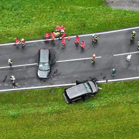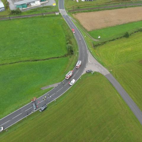 Samstag, 26.07.2025Am 26. Juli 2025 kam es um 10.49 Uhr auf der B127 bei der Krennbrücke zu einem Verkehrsunfall, bei dem zwei Fahrzeuge in der Kurve auf der nassen Fahrbahn zusammengestoßen sind. Ein Kamerad, der sich gerade auf der nahegelegenen Modellautobahn befand, bemerkte den Unfall und alarmierte umgehend die Feuerwehr. Da aus dieser Entfernung nicht klar war, ob Personen in den Fahrzeugen eingeklemmt waren, wurden neben uns auch die Feuerwehren Aigen und Oepping alarmiert.
