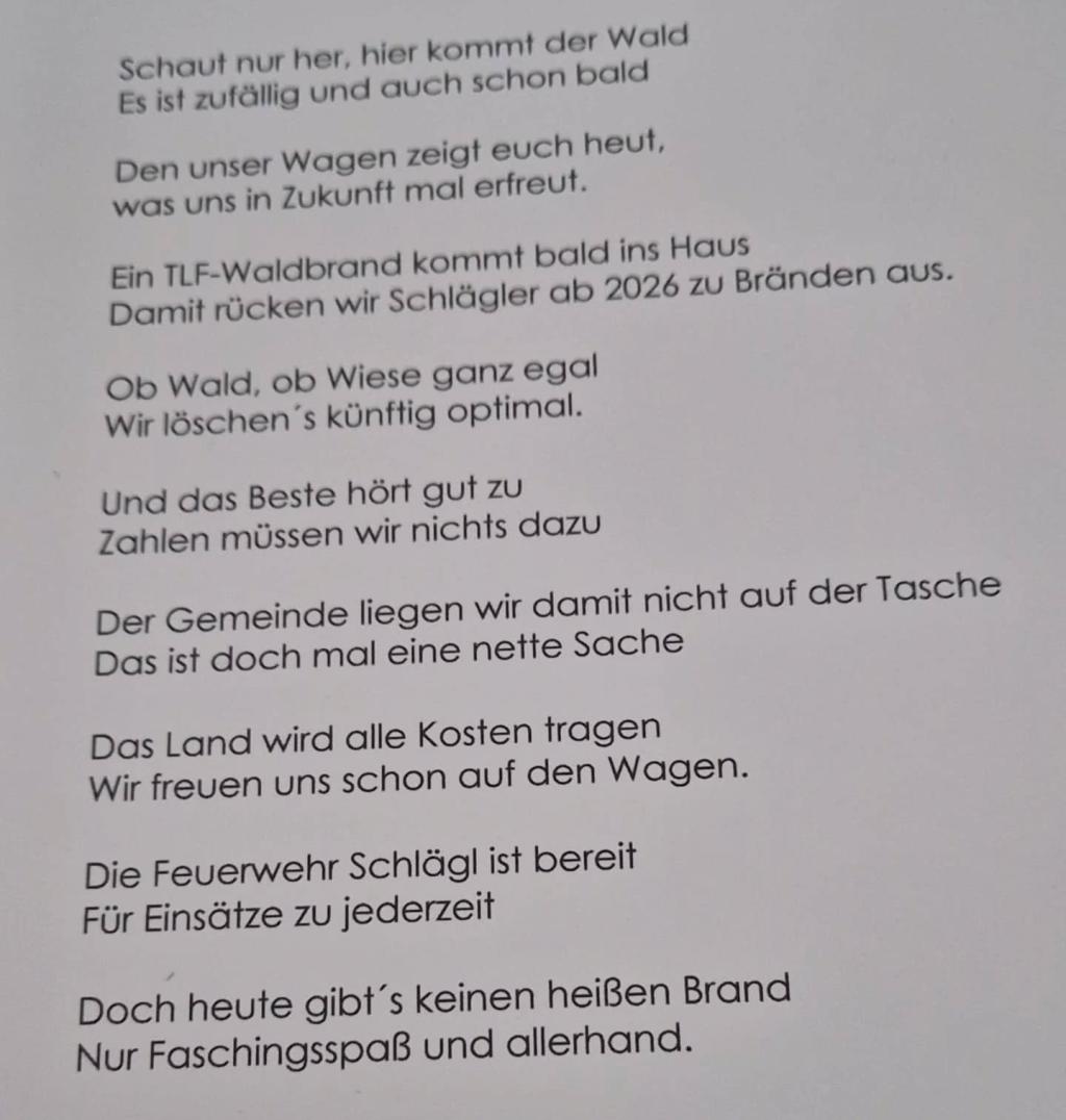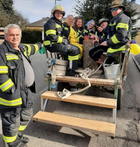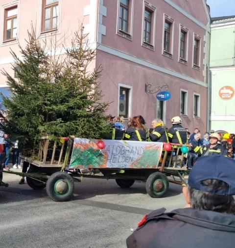 Wenn die Feuerwehr mit Blaulicht und Sirene durch die Straßen zieht, brennt es - zumindest fast! Beim diesjährigen Faschingsumzug am 04. März 2025 in Aigen-Schlälg haben wir uns einem wichtigen Zukunftsthema gewidmet: unserem neuen Waldbrandfahrzeug, das 2026 in Dienst gestellt wird. Passend dazu lautete unser Motto, das auf unserem Banner zu lesen war: "Waldbrandhelden ab 2026"