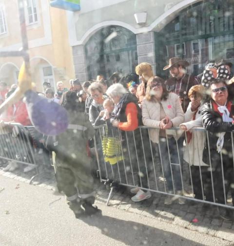 Am Faschingsdienstag um 13 Uhr hieß es dann: Antreten zum närrischen Einsatz! Gemeinsam fuhren wir nach Aigen, wo wir in zwei Durchgängen mit unserer lustigen und feurigen Truppe das Publikum begeisterten. Mit Rauchbomben simulierten wir ein loderndes Feuer, das wir - natürlich stilecht - mit unseren kleinen Wasserspritzen löschten - auch das Publikum blieb mit den Wasserspritzen nicht verschont. Dazu ertönte unsere Handsirene.
