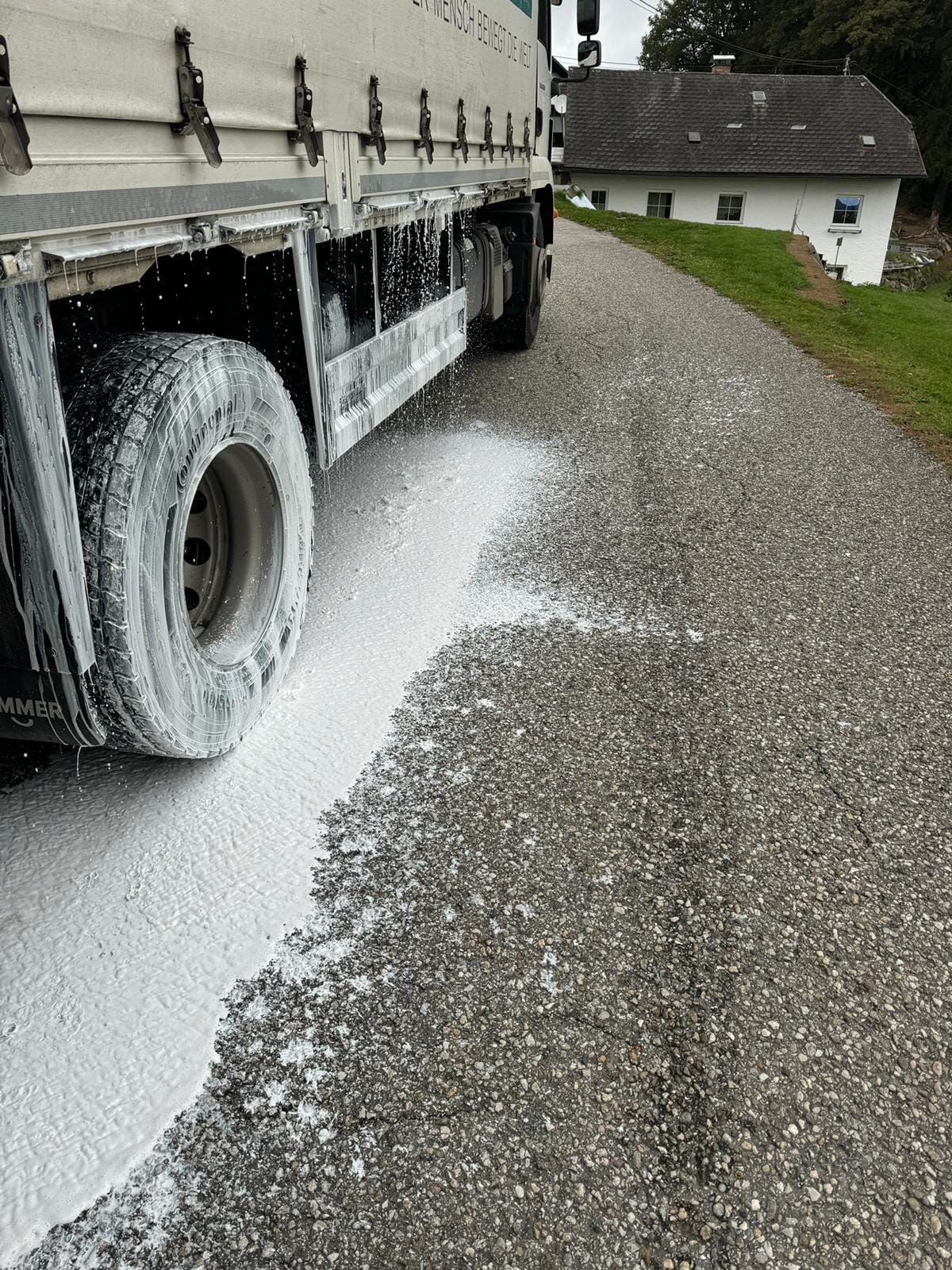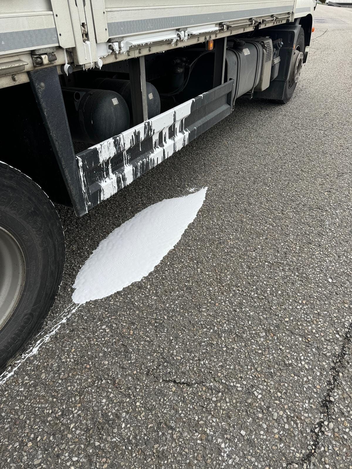 Einer Spedition verrutschte dei Ladung und verlor Wandfarbe.