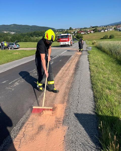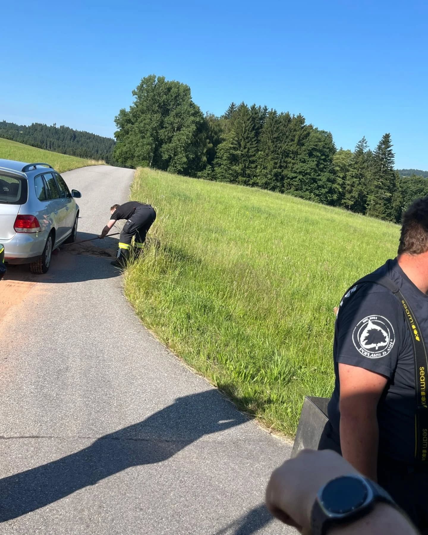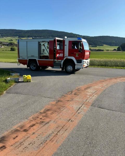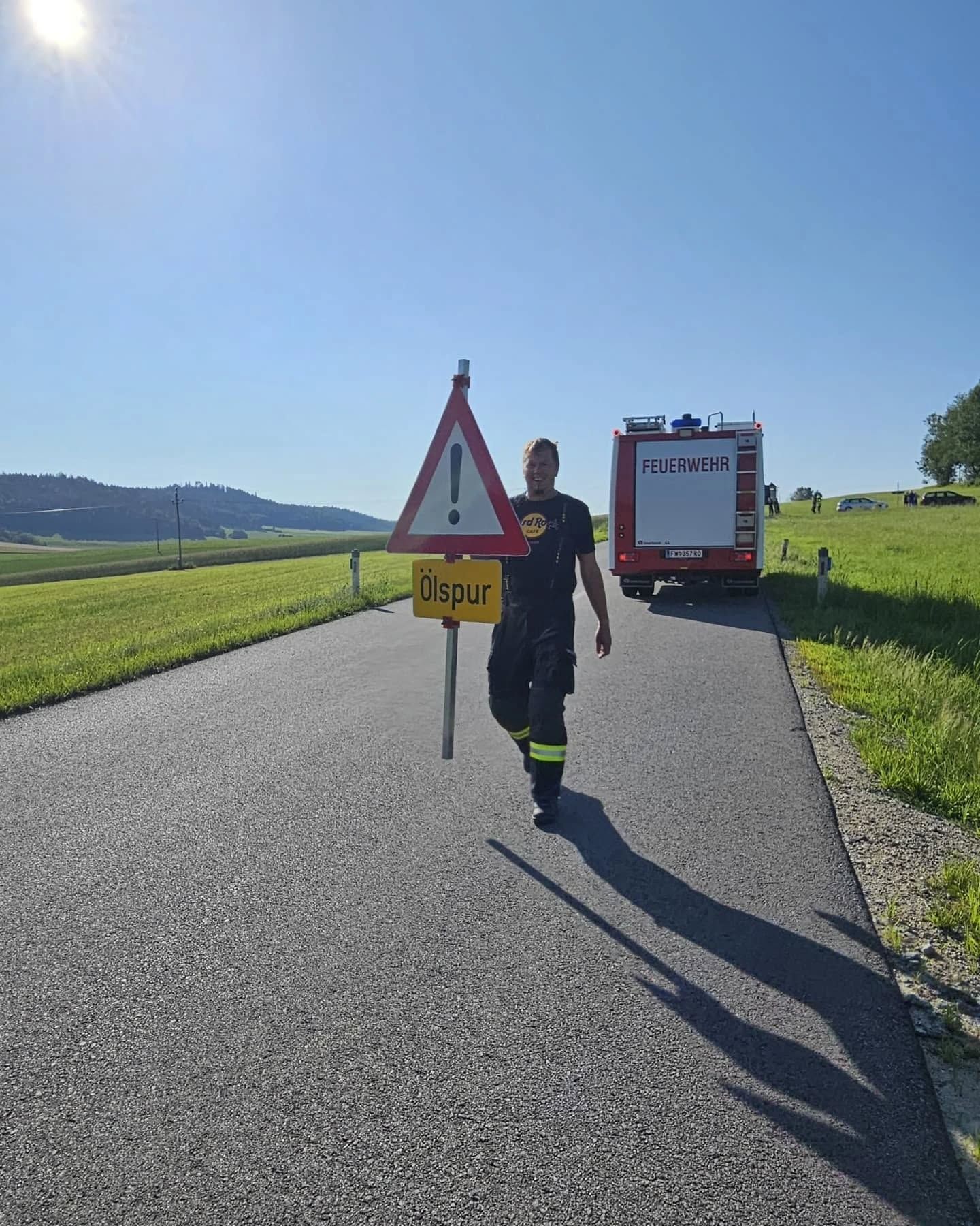 Samstag, 21.06.2025Mit Sirene wurden wir am 21.Juni 2025 zu einem Einsatz auf die Haslacheer Bezirksstraße gerufen - ein Fahrzeug hatte auf Höhe der Kreuzung Zöhrer (zwischen Baureith und Unterneudorf) einen Motorscahden erlitten und eine Ölspur hinterlassen.