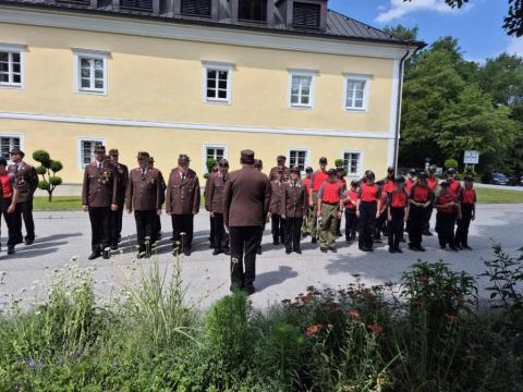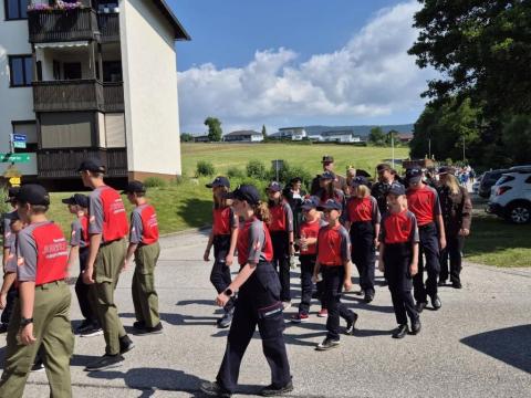 Trotz sommerlicher Temperatur marschierten alle Teilnehmenden mit Stolz und Disziplin. Für die nötige Erfrischung sorgte zwischendurch unser Kamerad, der Wasserflaschen reichte - besonders dankbar angenommen von der Feuerwehrjugend.