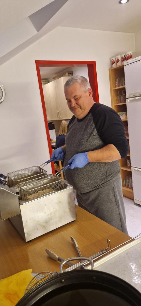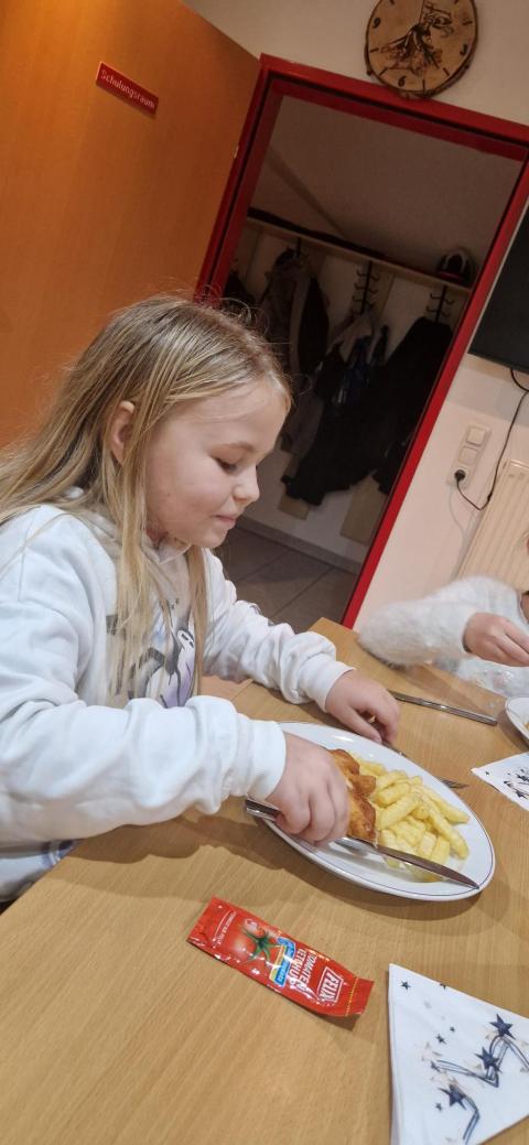 Der Abend begann mit einem gemeinsamen Essen, bei dem es Cordon Bleu mit Pommes gab. Ein großes Dankeschön gilt dabei Klaus, der uns das köstliche Abendessen gezaubert hat!