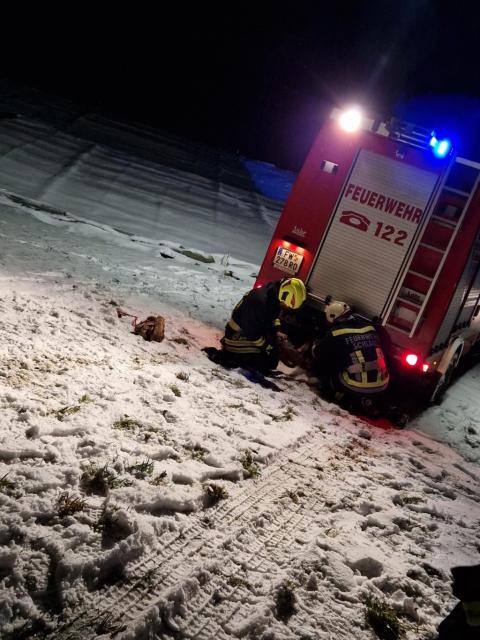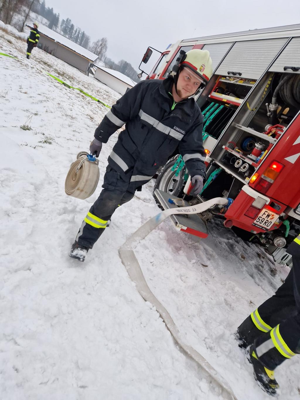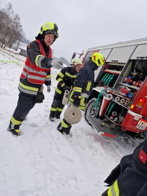 Nach einer kurzen Nachtpause, ging es am nächsten Morgen um 7:15 weiter mit der nächsten Alarmierung, wo wir den Schneedruck und die Dringlichkeit des Einsatzes prüfen mussten. Kurz darauf wurden wir nach Schwarzenberg zu einem Elektro KFZ Brand alarmiert. Angekommen wurde nicht wie Alarmiert unsere Seilwinde benötigt, jedoch wurden wir beauftragt, das Gebäude, welches dicht an dem KFZ stand zu Schützen.