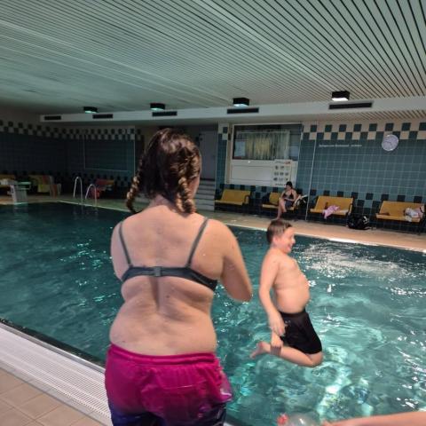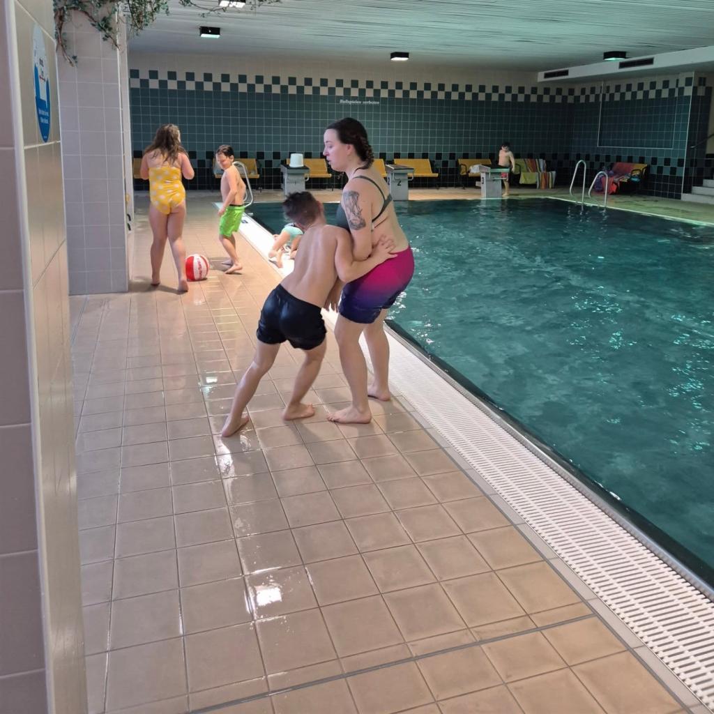 Wir hatten jede Menge Spaß im Wasser. Es wurde geplanscht, getaucht und sogar mutig gegenseitig ins Wasser geworfen - der Spaßfaktor war rießig! Dabei kam auch die Gemeinschaft nicht zu kurz: Zusammen lachen, spielen und aktiv sein hat den Tag für alle zu einem echten Highlight gemacht.