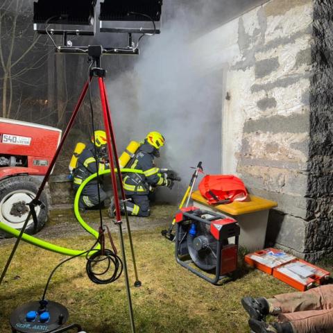 Übungsannahme war ein Garagenbrand mit vier vermissten Personen, wobei es sich dabei um Kinder handelte. Unter Atemschutz wurde sofort mit der Personensuche sowie der Brandbekämpfung begonnen.