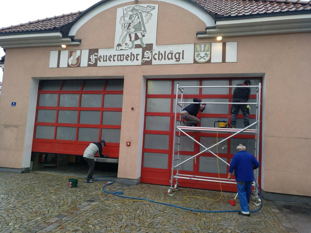 Heute wurden unsere Garagentore wieder aufpoliert und anschließend gereinigt. Das Ergebnis kann sich definitiv sehen lassen. Vielen Dank den Helfern für die geleistete Arbeit und an Stefan Arnoldner (malerei-arnoldner.at) für das zur Verfügung stellen des Gerüsts!