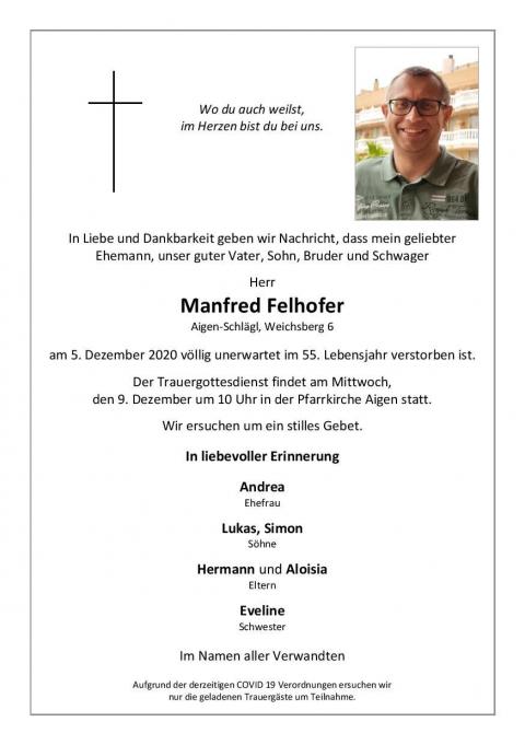Feuerwehrkamerad Manfred Felhofer unerwartet verstorben